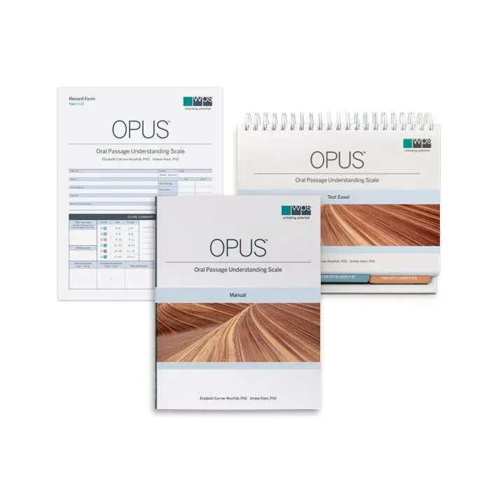 Everything you need to know to use the OPUS, as well as detailed information about its development, standardization, and psychometric properties is included in the OPUS Manual. Training audio files are available at www.wpspublish.com/OPUS (coming soon!) that demonstrate the standard pace and intonation for reading the passages. (The audio files are for training only, and should not be used for administration).