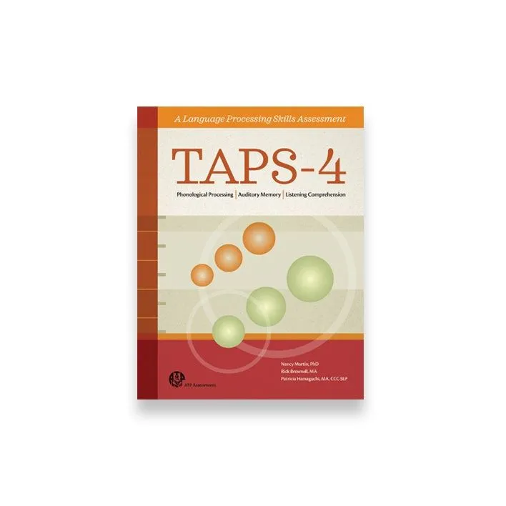 This revised version features new subtests along with revisions to subtests from the TAPS-3, fully updated norms, and an expanded age range. The TAPS-4 subtests were also reorganized into Index and Supplemental subtests, reducing testing burden and increasing flexibility in administration.